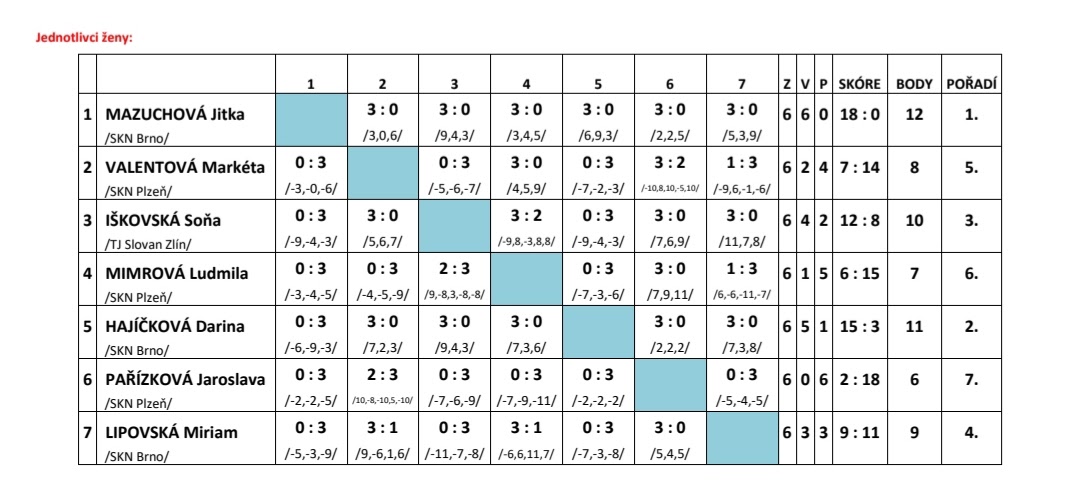 Na turnaji v Brně startovalo celkem osm hráček a hrálo se systémem „každá s každou“ na 3 vítězné sety. Darina s přehledem vyhrála šest zápasů 3:0 na sety a až v souboji o 1. místo podlehla 1:3 na sety zkušené člence české reprezentace sluchově postižených Jitce Mazuchové z Brna.